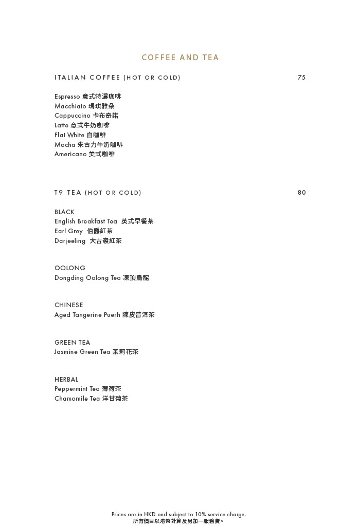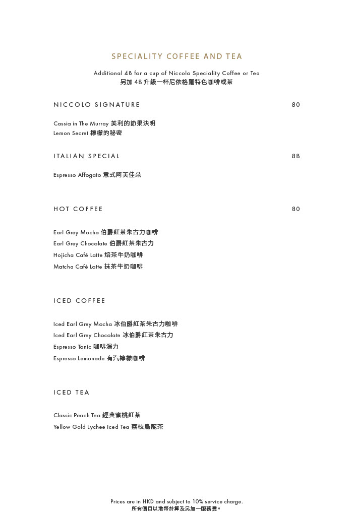 ‧ Price is subject to 10% service charge of original price.