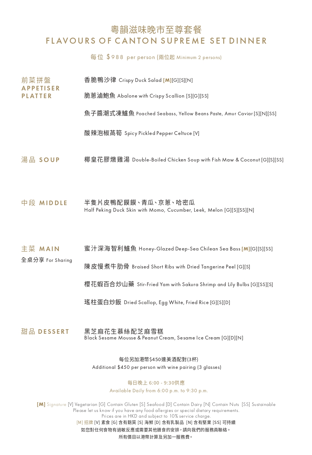 Garden Lounge 「粤韵滋味」晚市至尊套餐