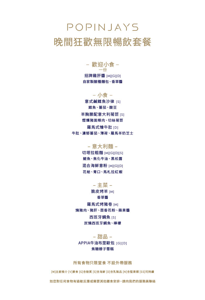 本月的最後一周五來Popinjays和我們一同提前開啟周末狂歡模式,盡情品味羅馬料理最樸實而深刻的風味!